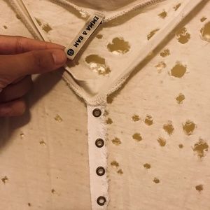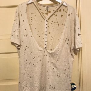 White destroyed T with cut out and high neck! Worn twice, size XS fits like a M and is supposed to be worn oversized