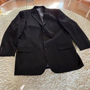Emmanuel Ungaro 100% Wool Mens Suit Black Pinstripe 46L/38W Business Formal