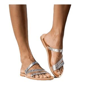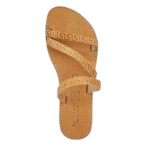Emmanuela Meander Serifos Sandals Handmade Tan Leather Slide Flat 40 9.5