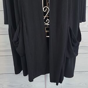 A go-to casual comfy open front layering cardigan by Emma's Coset in a long silhouette, long sleeves, and hand pockets. Great pre-owned condition with normal signs of wash and wear.