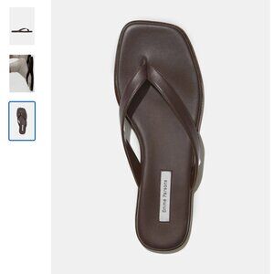 An elevated thong sandal with a directional square toe and an extra padded insole for all-day comfort rendered in buttery soft nappa leather