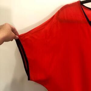 Emmelee Sheer Bright Contrast Orange Tie Front Top Size Small Oversized Popover