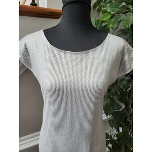 Emmelee Women's White Polyester Round Neck Cap Sleeve Knee Length Dress Size M.