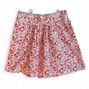 pink, blue, white, green floral pattern. 100% cotton. approx 15" waist, 19" long. great pre owned condition