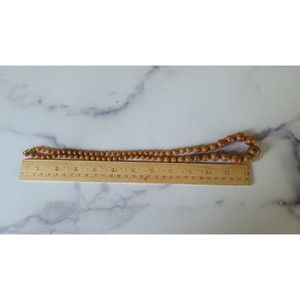 This is a vintage Emmons tan plastic beaded necklace with a gold tone metal.