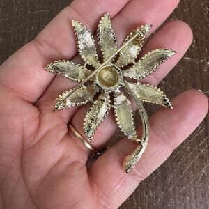 Emmons Silver Tone White Rhinestone Flower Floral Stem Brooch Pin