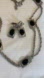 The necklace is one strand and is approximately 44” long and the earrings are approximately 1-1/4”.