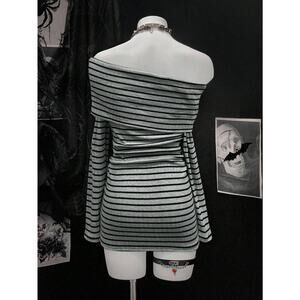 Emo Egirl E-girl Y2k Asymmetrical Off Shoulder Bodycon Gray Strip Dress S