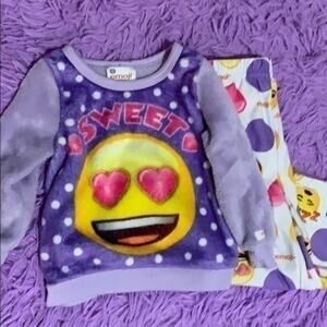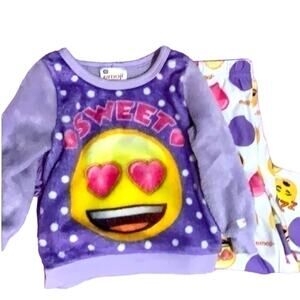 Emoji Graphic Purple Pajama Set teddy fleece smiley face Size 2T