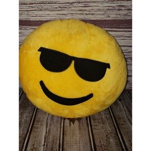 Emoji Smiley Yellow Collectible Pillow Wearing Sunglasses Vintage.
