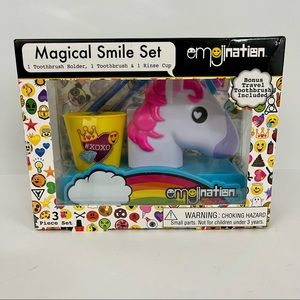 Emojination Set 3 pc Set Unicorn Toothbrush Holder Folding Toothbrush Rinse Cup