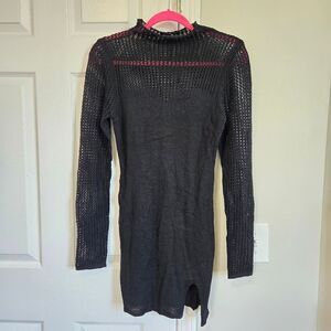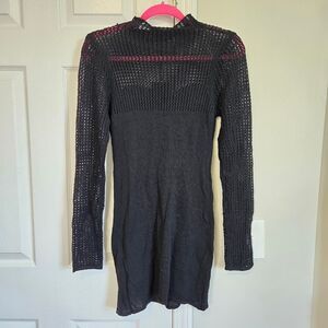 Emory Park Black Mock Neck Netted Knit Mini Dress NWT Large