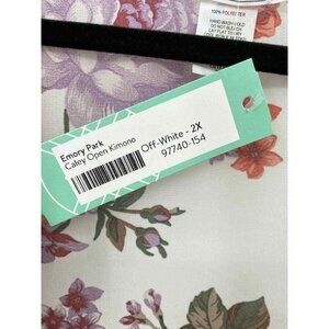 Emory Park Caley Kimono Womens plus 2XL White Sheer Floral S/S NEW