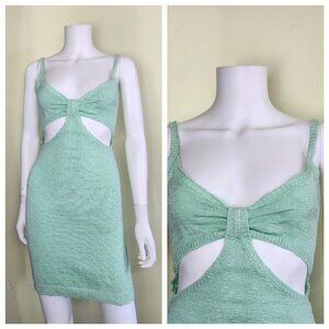 Emory Park Knitted Cut Out Bodycon Dress Womens M Green Summer Sexy Mini