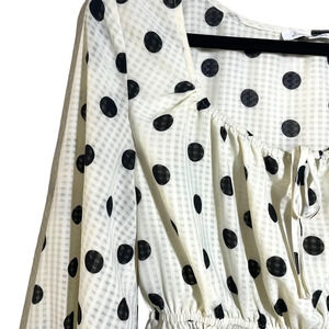 Emory Park Puff Sleeve Tie Front Polka Dot Blouse in White and Black Size S