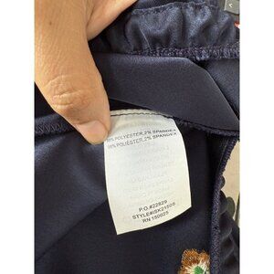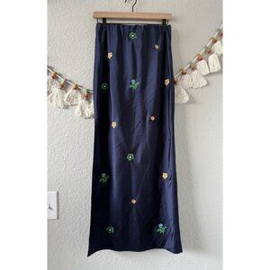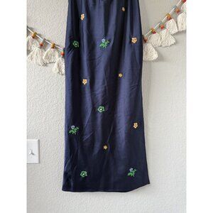 Emory Park Satin Silky Slip Midi Skirt Embroidered Ditsy Floral Navy Pull On M