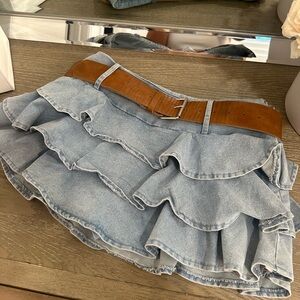 Chic denim piece by Emory Park. Ruffle Jean skirt , perfect for stagecoach or any concerts