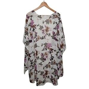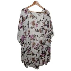 Emory Park Womens 3XL Sheer Kimono Ivory w/Floral Pattern Fairy Flowy Boho Slits