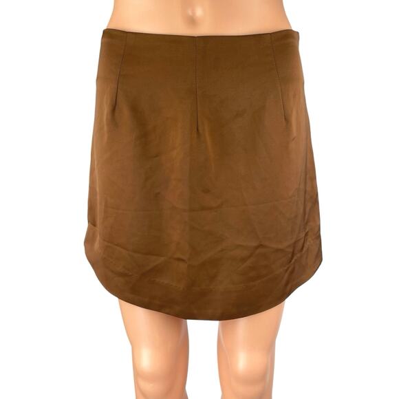 Emory Park Women's Brown Silky Satin Zipper Mini Pencil A-Line Slip Skirt Size M