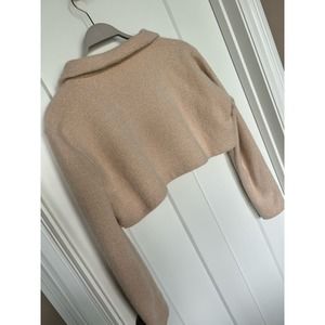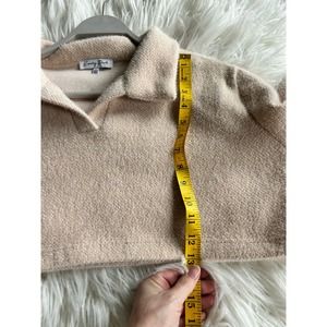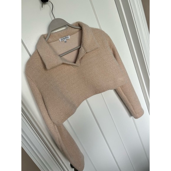 Emory Park Women's Cropped Collared Sweater Long Sleeves Tan Size Medium