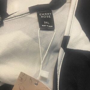 Emory Rose Black/White V-neck pleated front bottom wide leg jumpsuit, size 3XL (95% Polyester, 5% Spandex)