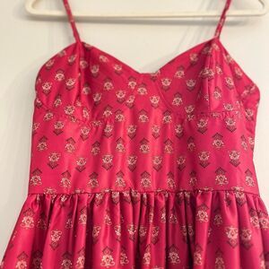 Elegant red maxi dress with floral pattern. Perfect for any occasion.