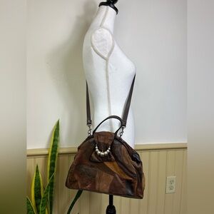 Emp•Orr Mixed Leather Patchwork Satchel Bag | Boho Indie Vintage