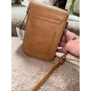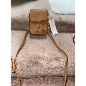 Introducing the Emperia Mini Crossbody, a chic and compact accessory crafted from luxurious vegan leather in a rich brown hue. This stylish bag features a magnetic snap closure and a playful tassel accent, adding a touch of flair to your everyday look. The adjustable strap ensures a perfect fit, while the multicolor lining brings a pop of color to your essentials. Ideal for casual outings, this mini crossbody is perfect for brunch dates, shopping trips, or weekend adventures. New with tags (NWT).