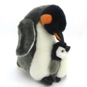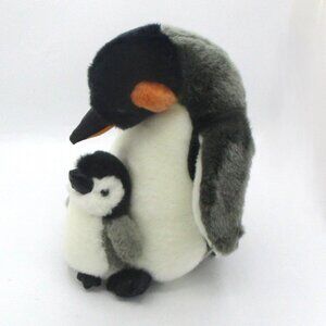 Emperor Penguin Plush Toy W/ Chick By The Petting Zoo 1994 Soft & Cuddly Gray/Wh