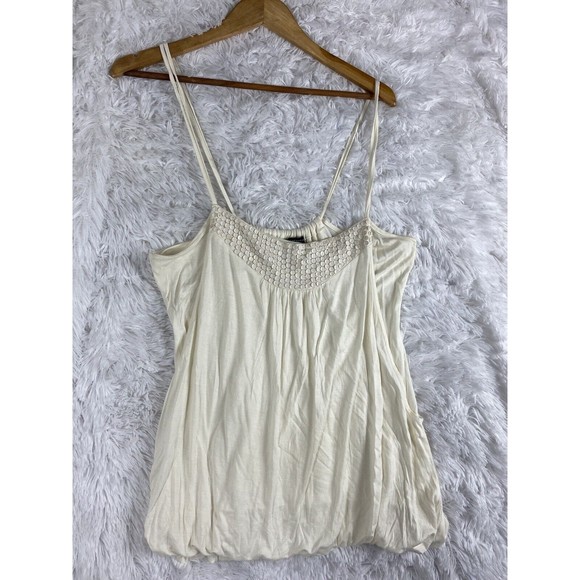 Emphasis Womens Ivory Tunic Tank Top Size L Rayon Overlap Sequins Embellished