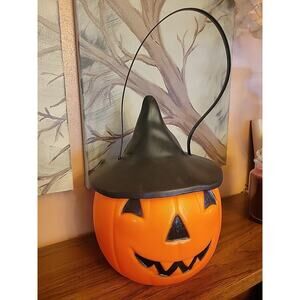 Empire 1995 Vintage Blow Mold Halloween Jack O'Lantern Pumpkin with Witch Hat