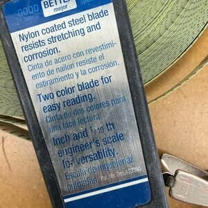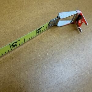 Condition: Used. The item shows signs of wear, including some red paint residue on the hook and the first few inches of the blade tape. The winding mechanism functions properly. Please see photos for exact cosmetic condition.