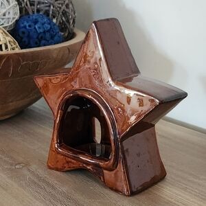Empire Candle Company, rare, Ceramic star-shaped, American flag tealight candle holder. American flag design. Features red, white, and blue colors. the sides have a smooth feel and the front flag has a rough texture that gives it a 3d look. Great for tealights or just as an Amwricana themed decoration.