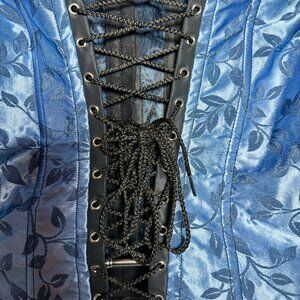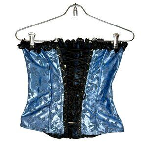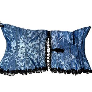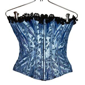 Empire Intimates Satin Blue Floral Lace Up Corset Bustier Sz 32