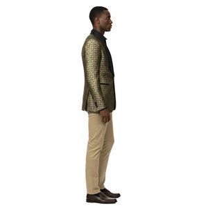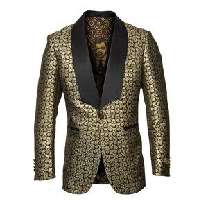 Empire™ Metallic Gold Paisley Shawl Lapel Hybrid Fit Blazer, Gold