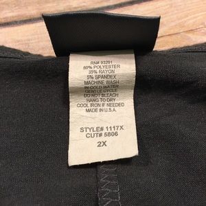 Short sleeve empire waist top by Dots. Gray with silver highlights splashed across the front.(not sure how else to describe it) Size is 2X with approximate measurements shown.