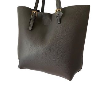 Empire dark gray leather bucket tote handbag. New. Magnetic closure.