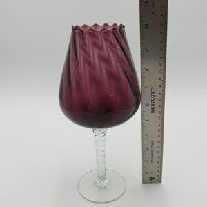 Elegant Empoli handblown glass goblet featuring a rich purple swirl pattern and a textured, clear stem. Preowned