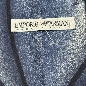 Elevate your formal wardrobe with this luxurious Emporio Armani tie, expertly crafted in Italy from 100% silk. Featuring a stunning abstract design in shades of blue and green, this tie is the epitome of sophistication and style. Perfect for the modern professional or special occasions, this tie adds a touch of elegance to any outfit. Don't miss the chance to own this iconic piece from a renowned fashion house!
