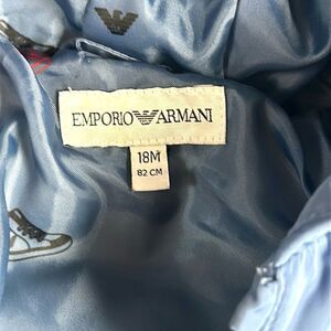 Emporio Armani Baby Boy’s Hooded Down Puffer Jacket Blue and Gray 18 months
