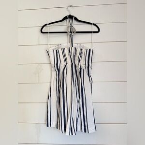 Emporio Armani Babydoll Striped Strappy Summer Dress White Navy