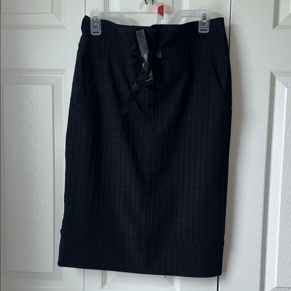Chic black pencil skirt with subtle texture. Features a stylish bow detail. Perfect for professional or evening wear.