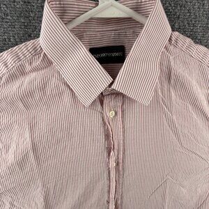 Emporio Armani Button Up Shirt Red Striped Long Sleeve Button Up Shirt 15.75