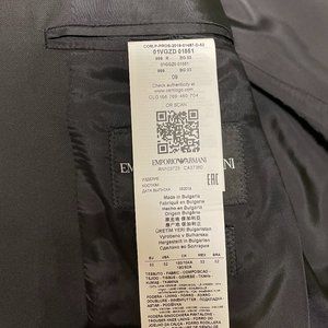 Technically brand new Emporio Armani suit, worn only once with no defects. Pants were altered professionally, and the approximate waist size is 34. Open to answer any questions and provide more images if requested.