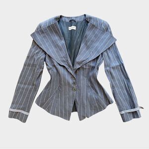 Emporio Armani Gray Blazer with Dramatic Shawl Collar