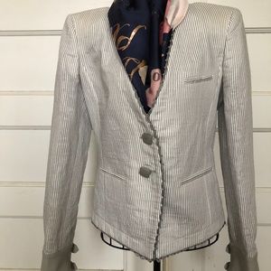 Emporio Armani Grey Pinstripe Blazer with silver tone Buckle Cuffs NWTG size IT40 Unique V Neck with grossgrain trimmings