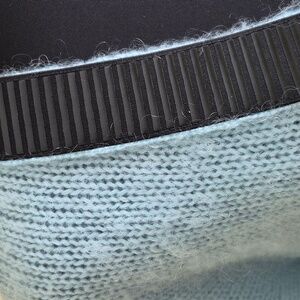Elegant light blue knitwear by Emporio Armani. Crafted in Italy. really soft, bordered with a textured black ribbing. snap closure in front.