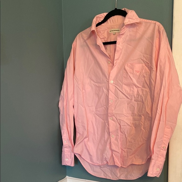 Emporio Armani Men's Pink Button-Up Shirt - size small - 100% cotton