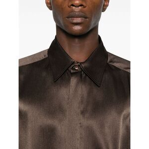 brown pointed collar long sleeves button fastening buttoned cuffs tonal stitching