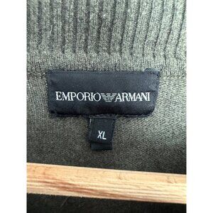 Emporio Armani Men's XL Henley Sweater Green and Pink Wool Office Preppy